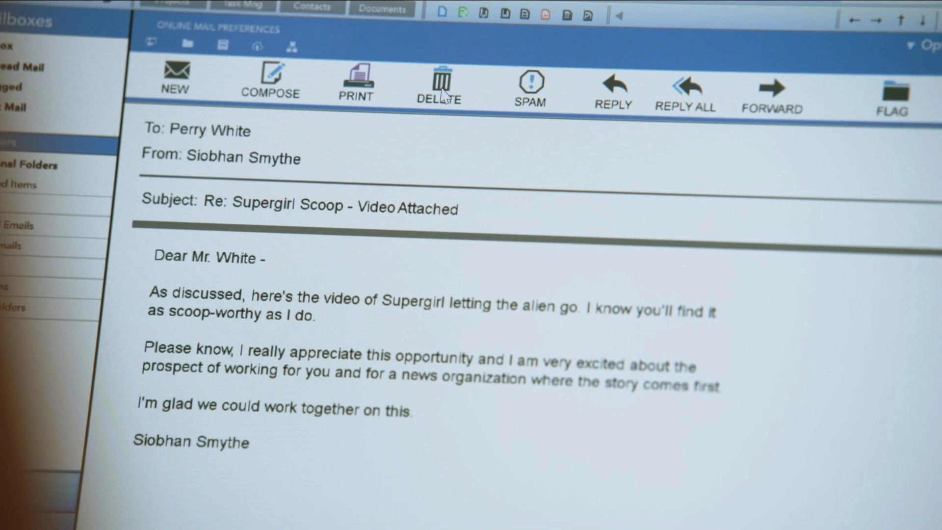 - Шивон собиралась отправить письмо по электронной почте Перри Уайту, который является главой «Daily Planet».