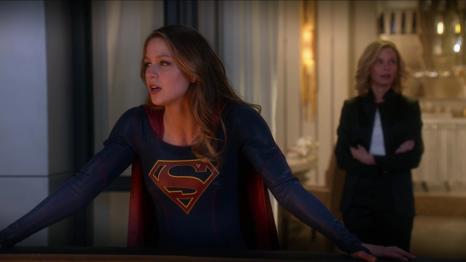 Кара прибывает в CatCo на лифте Кэт.