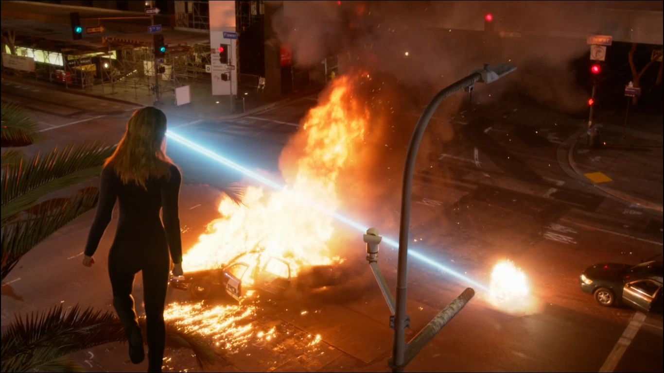 По телевизору продолжают показывать речь Кэт Грант. Кара сидит в баре, слушая эту речь, после чего начинает орешками разбивать бутылки в баре. Затем она разбивает огромный монитор в городе и взрывает полицейскую машину. Прибывают отряд D.E.O., чтобы остановить её, начинают стрелять в нее, но она выбивает у них всех из рук оружия,