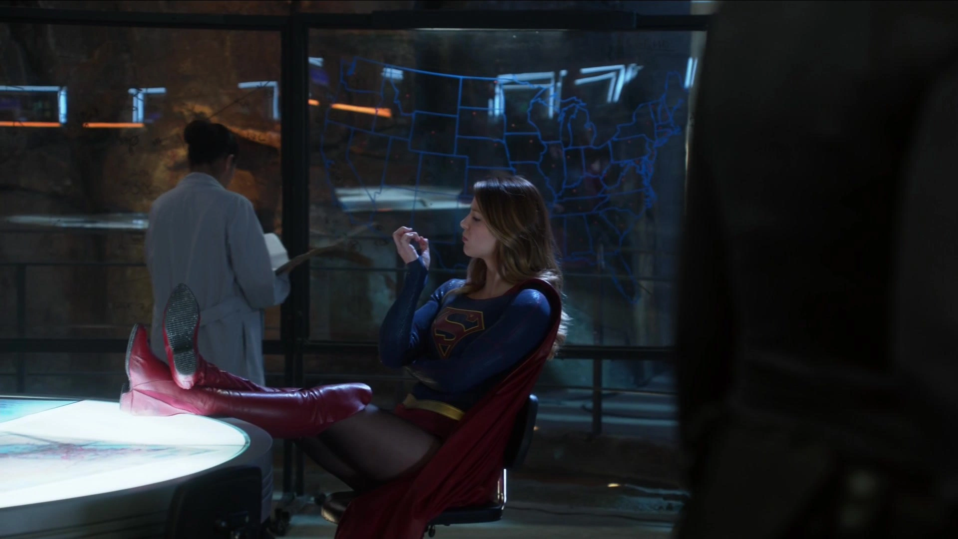 На следующий день Кара снова в новом наряде прибывает в офис на личном лифте Кэт, чему Уинн очень сильно удивлен. Кэт также подходит к ней и спрашивает, какого черта она устроила, на что Кара отвечает, что путь от основном лифта занимает девяносто секунд, значит её латте будет на девяносто секунд холоднее. Кэт отвечает, что это нагло, такой она её не видела, но она даже не против, пока что. После этого Шивон говорит Кэт, что нашла отличный материал и предлагает ей поговорить наедине. Они проходит в кабинет Кэт, где Шивон показывает ей видеозапись, на которой Супергёрл отпускает преступника. Кэт говорит ей, что она спрятала это, пока они не выяснят, что происходит и отказывает публиковать этот материал.